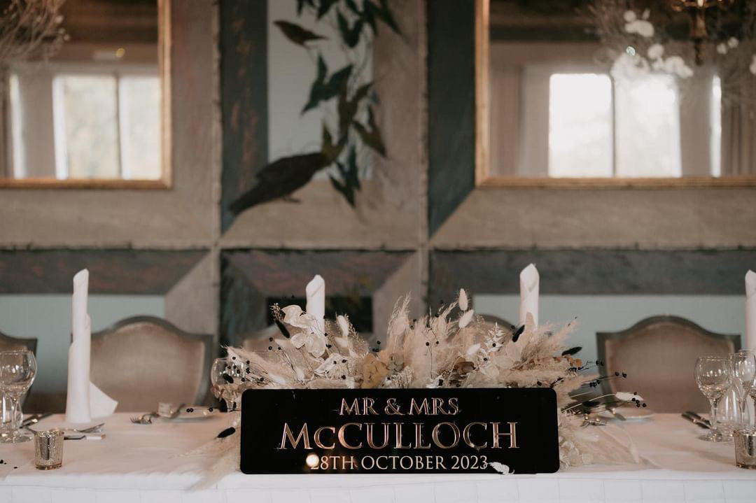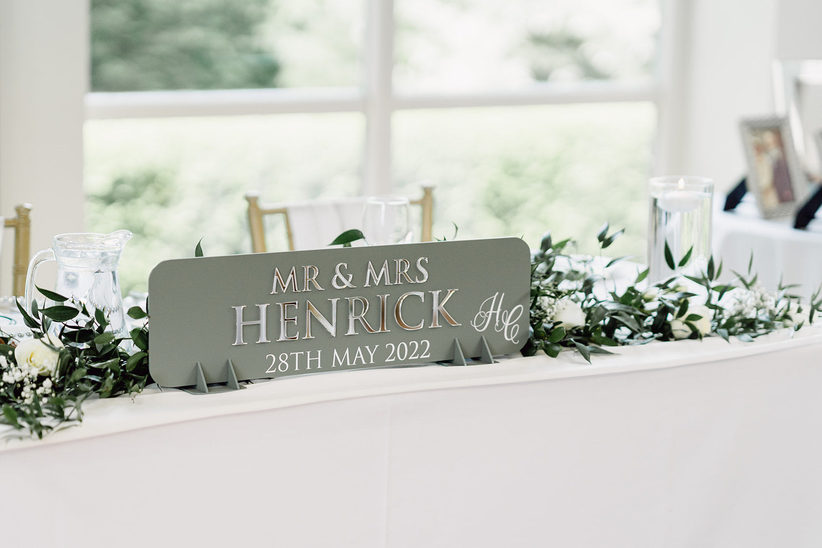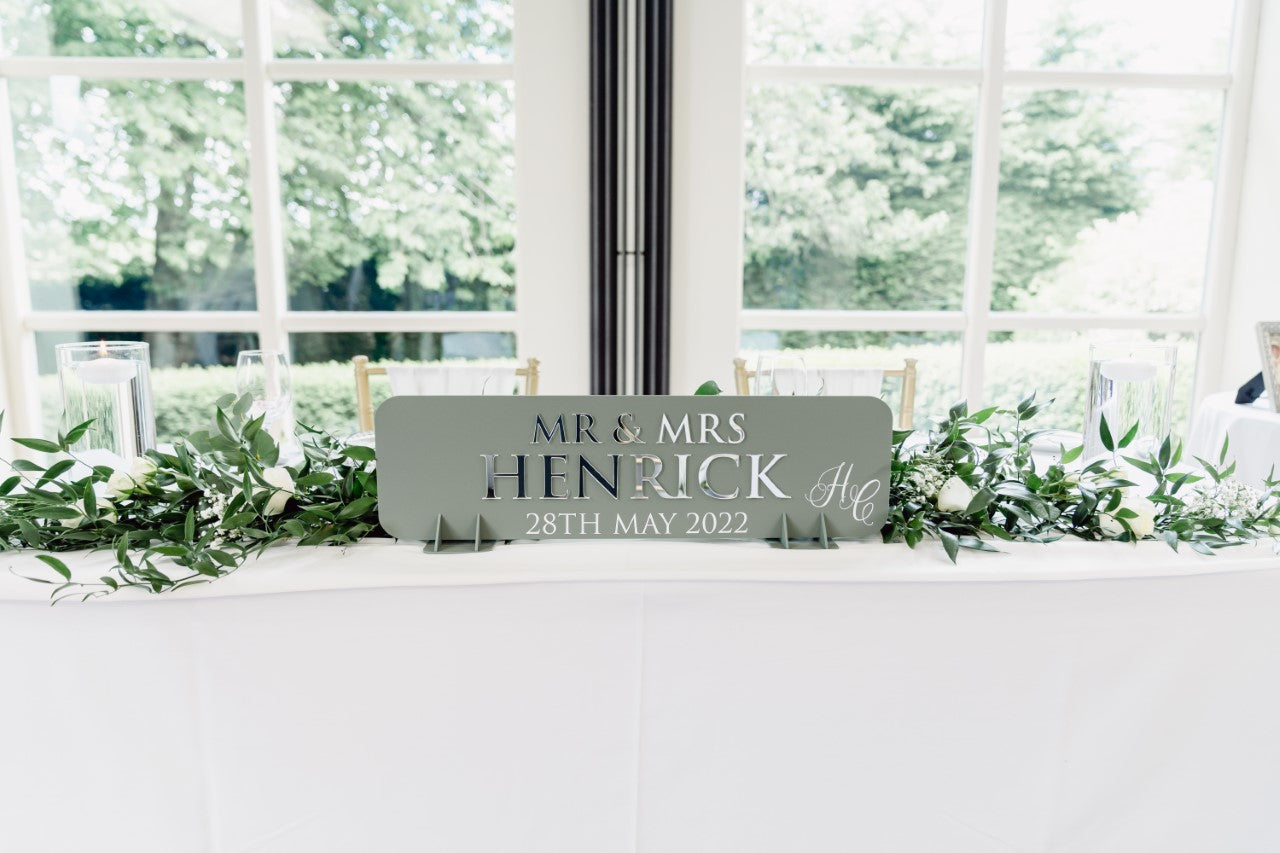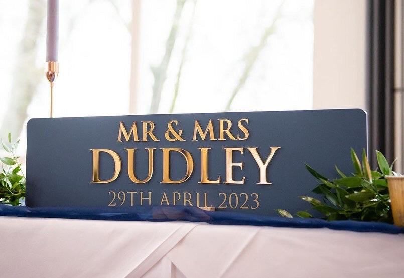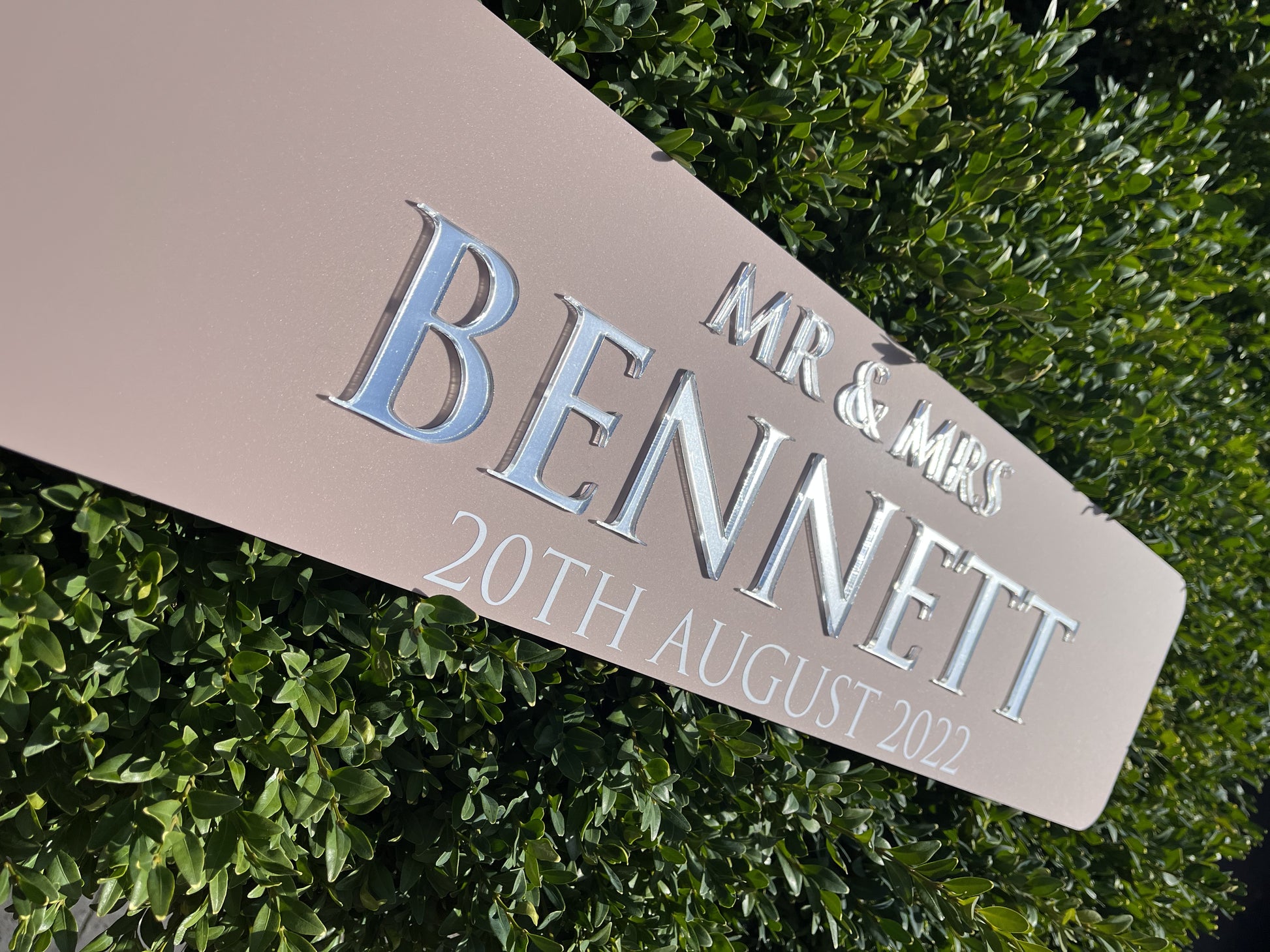 Your name is in acrylic meaning it’s a double acrylic sign. These are finished to a very high standard and are a perfect keep sake from your day.